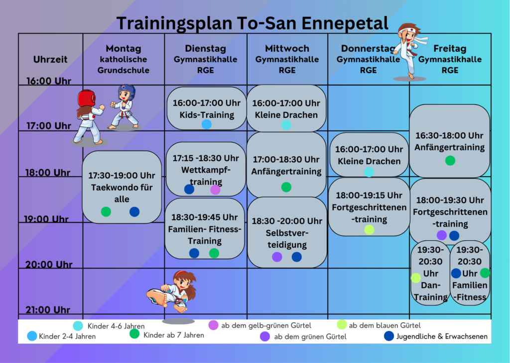 Bitte Beachten: In den Ferien, sowie an Feiertagen und Brückentagen findet kein Training statt.
